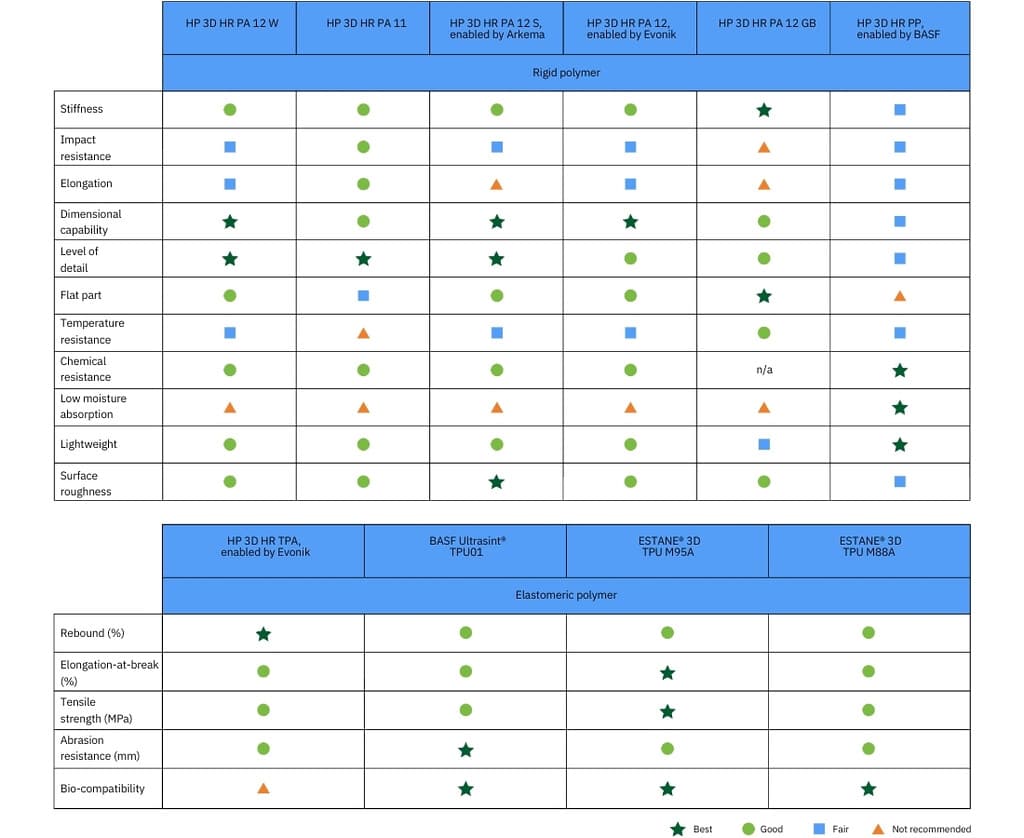 HP è impegnata ad ampliare il proprio portfolio di materiali certificati per le soluzioni di stampa 3D Jet Fusion, collaborando con diversi fornitori per aumentare le opzioni di materiali e applicazioni disponibili, tra cui: